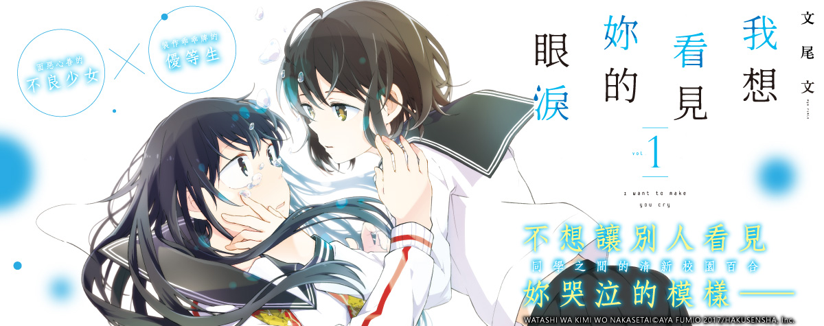 《我想看見妳的眼淚》(原書名:私は君を泣かせたい)是文尾文的作品,於日本推出時便引起熱烈迴響,被譽為當年度最受歡迎的GL作品之一,也是讀者們心中的百合經典作品。