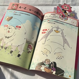 「英文課」學習書內容豐富,以單元區分進度,能在完成迷宮、著色與連連看的時候自然地學會英語!有效地帶領小朋友認識英文字母、單字和句型,也有許多寫給家長的小訣竅,幫助小朋友和安妮亞等漫畫角色一起從遊戲中學習!