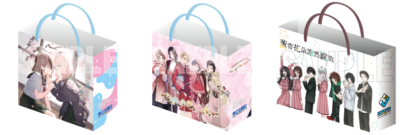 另外,消費即送小紙袋,滿額900元送中提袋。小紙袋款式為國人原創作品《隔壁的冬歌同學只在意我》及《君為后》、《贈予你的魔法》、《與魔女的新婚契約》的聯合簽名會主題款。中提袋則為日本簽名會作品《薰香花朵凛然綻放》款!
