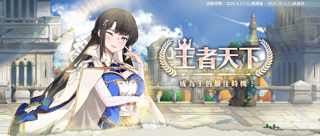 【王者天下】:9/17維護後~10/1維護前,達成指定活動任務條件即可獲得包含「經驗值之書、鑽石200、神祕石、高級角色10次召喚券」等對應獎勵;完成所有活動任務還可獲得「★5角色召喚券」。