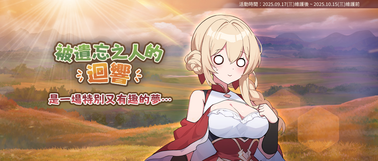 【被遺忘之人的迴響】:9/17維護後~10/15維護前,每日可掃蕩副本3次並蒐集「糖果幣」,糖果幣可於遊戲中活動商店、活動製作中兌換包含「特選角色召喚券、特選寵物召喚券、經驗值箱、首領召喚券:巨石陣、稀有禮物箱、輪盤券、閃耀粉末、經驗值之書」等豐富獎勵。